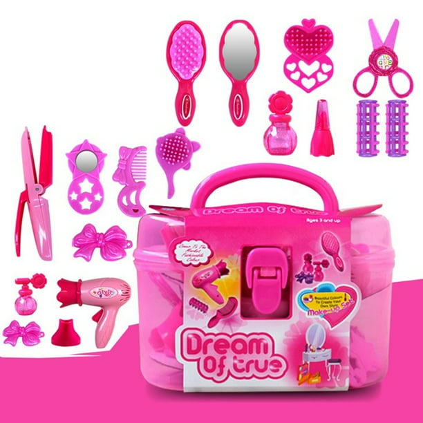 Kids Beauty Salon Set Toys 17pcs Little Girl Makeup Kit Pretend Play Hair Station With Case Hairdryer Brush Mirror Styling Accessories Walmart Com